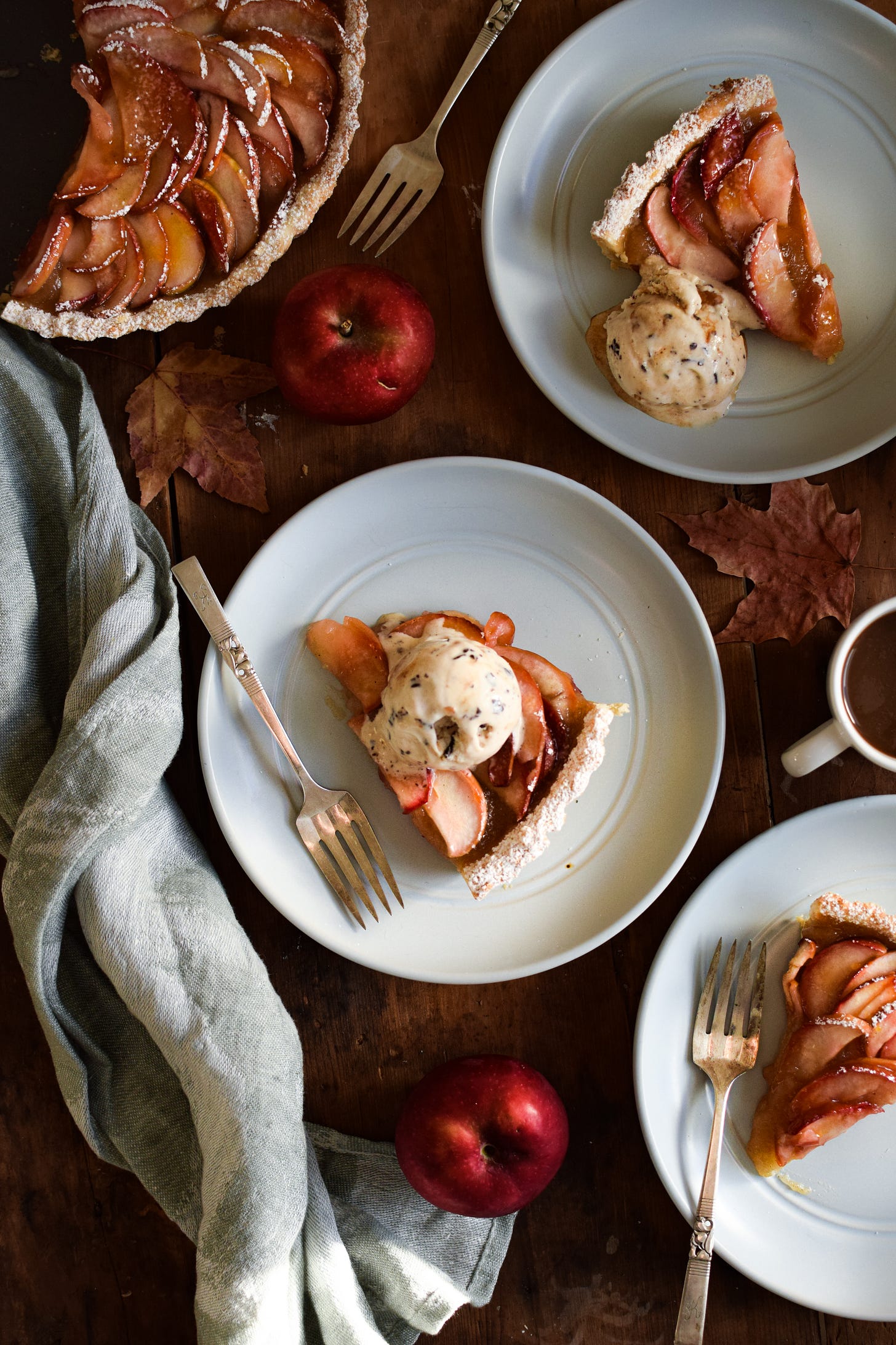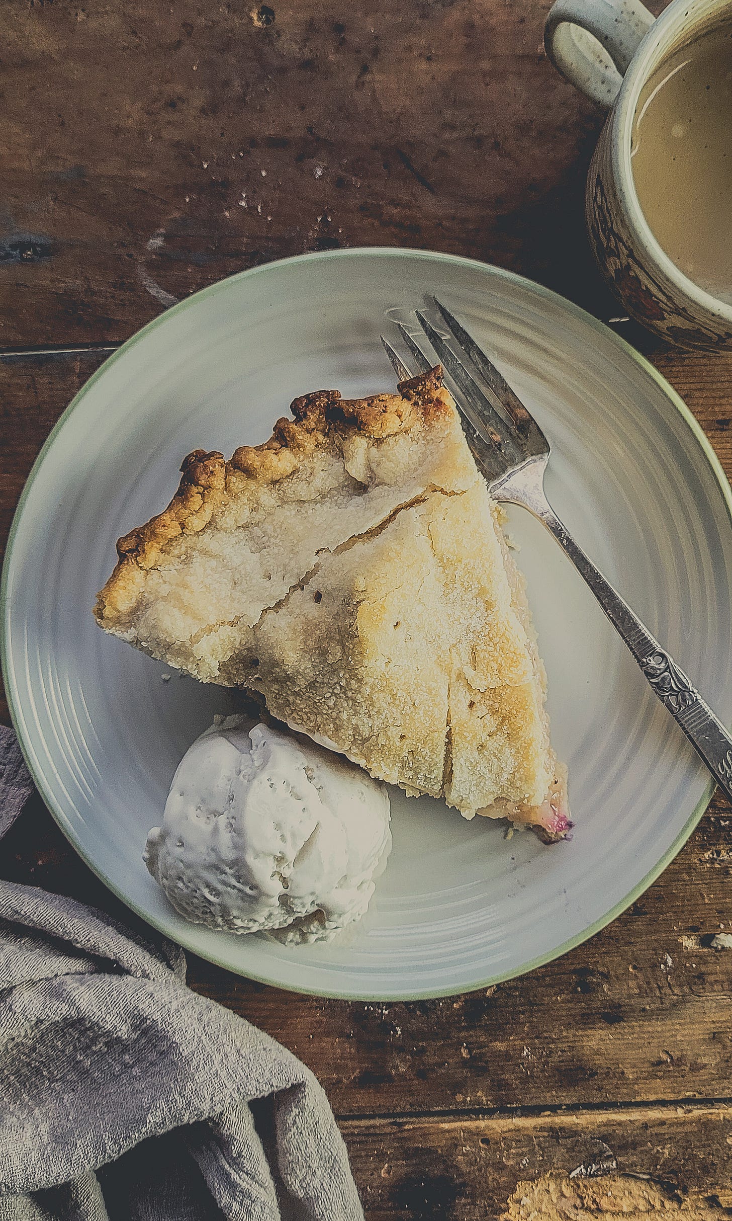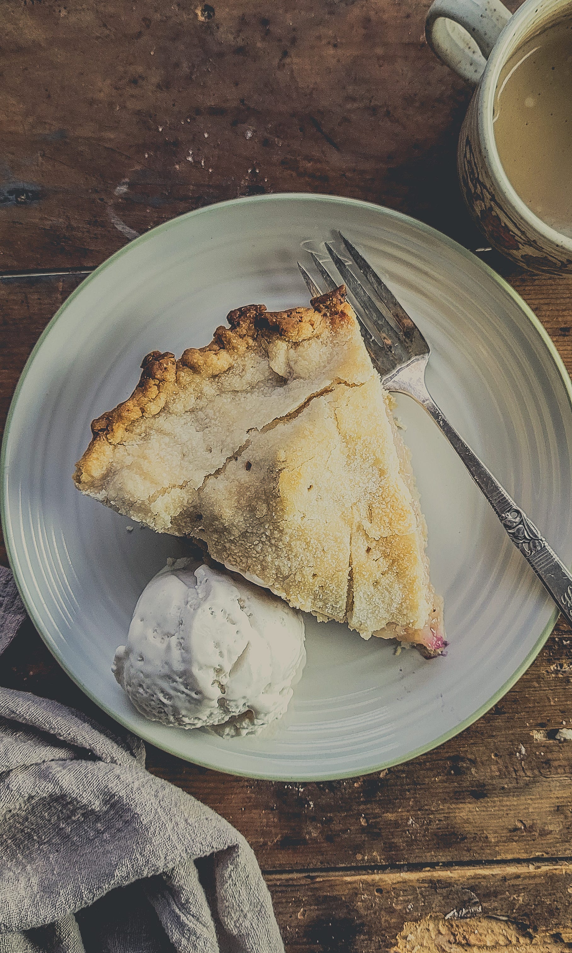 The apples had settled and slumped. Mum served us each a piece, a small scoop of cashew vanilla ice cream alongside.