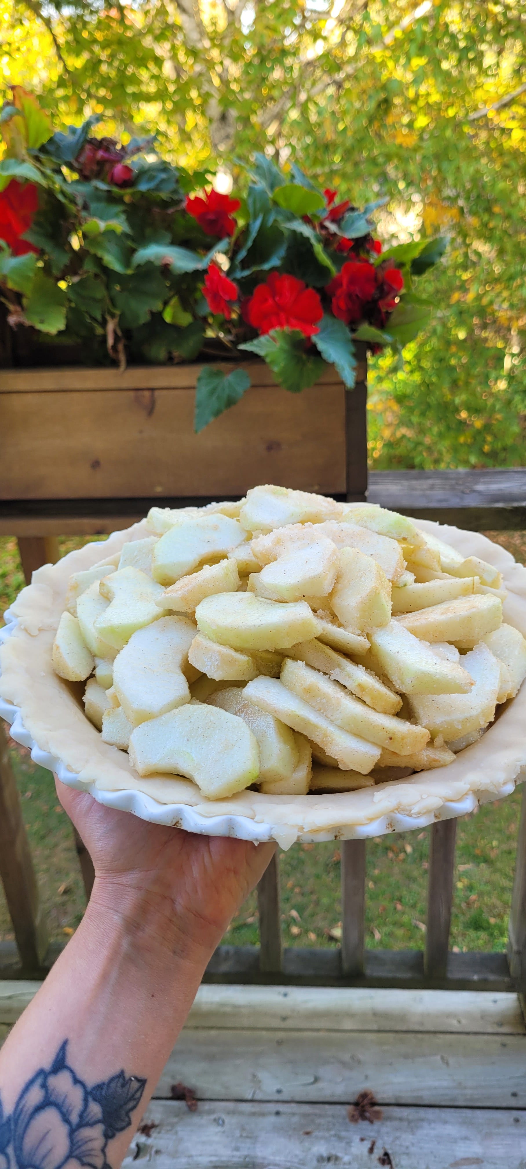 I had sliced and tossed a few too many apples in their cinnamon sugar coating, a perfect excuse to indulge. The smell of sweet fruit hit my nose as I tasted, the sugar coating sticking to my fingers, then dissolving on my tongue. We nibbled as we worked, adding the finishing touches to the pie.