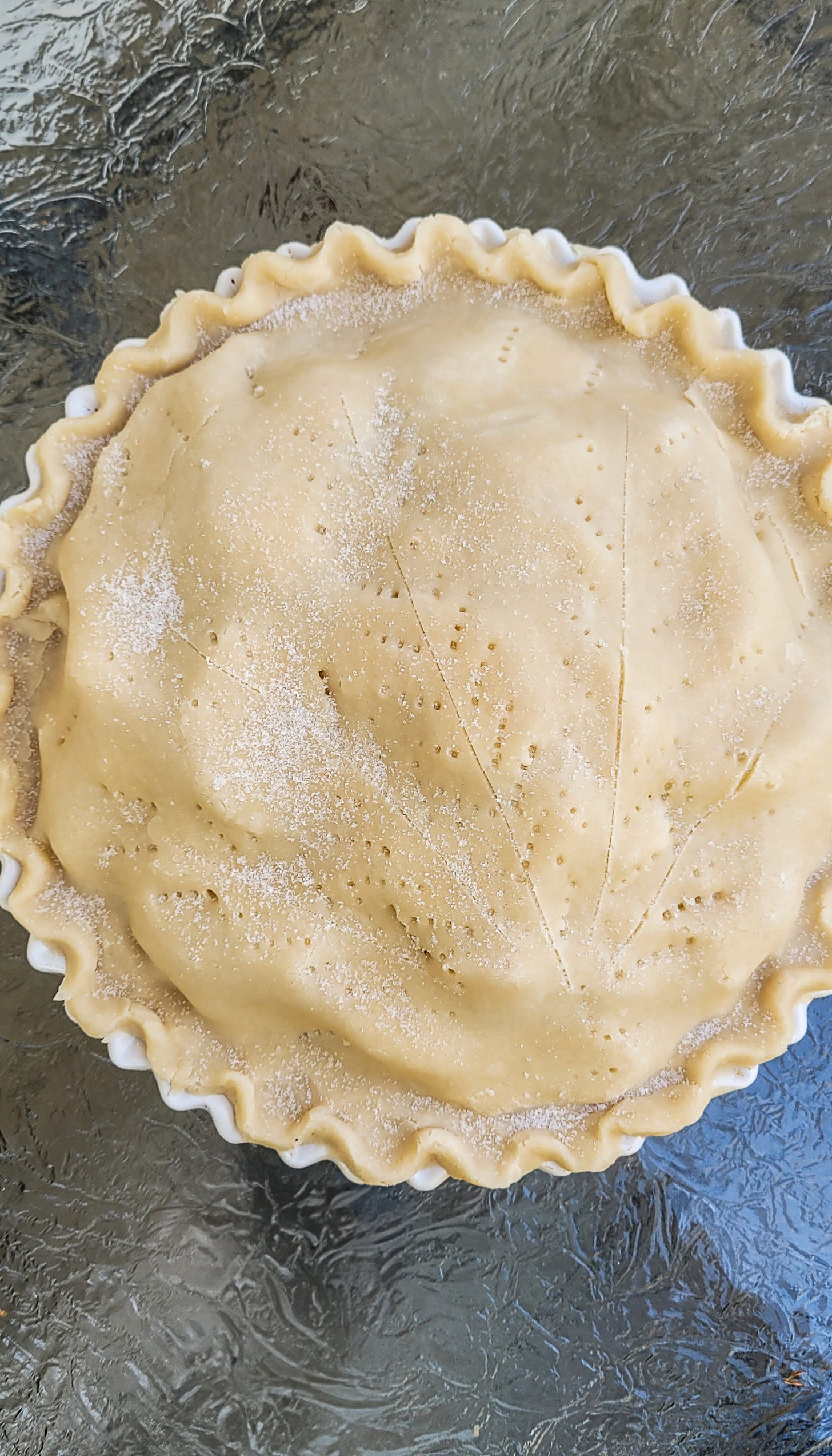 I added the top crust, using both hands to crimp and seal the edges as artfully as I could. Mum then showed me the specific design she, and her mother, would delicately carve into the pie. The purpose—to release steam—but as I took my knife, etching out a nostalgic pattern resembling foliage, it seemed to be about so much more.